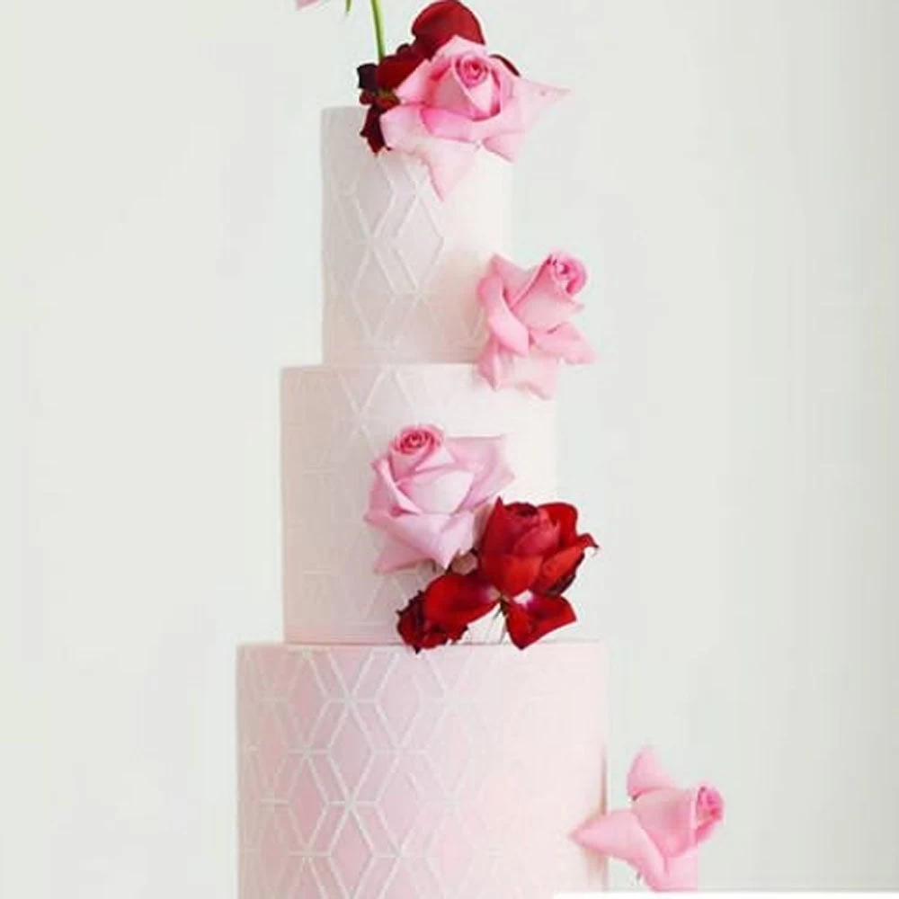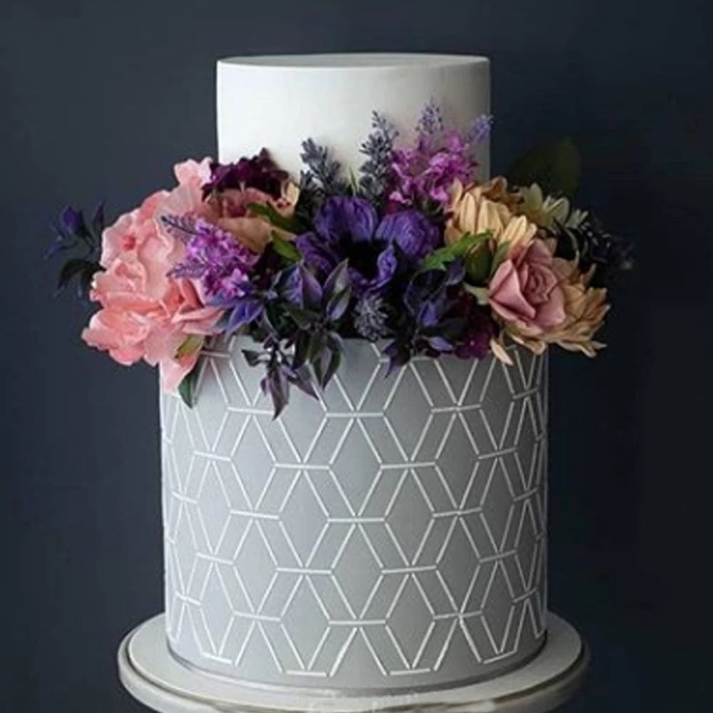 - Add some texture and depth to your creation with this cake stencil. Perfect for double barrel cakes and taller tiers, the stencil pattern area is almost 9 inches high, saving you time and creating a seamless effect from top to bottom.