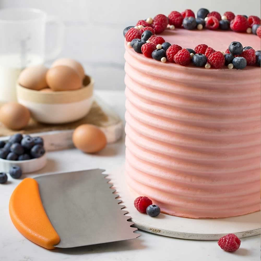 Stainless steel spatula with a comfortable ergonomic and non-slip handle. The wavy spatula is perfect for decorate the edges of the cakes with original textures. The over 20 cm long blade makes it suitable also for very high cakes.