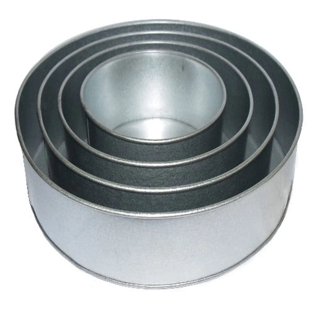 • The product contains 4 round cake baking tins of 6″ 8″ 10″ 12″ (3″ deep)