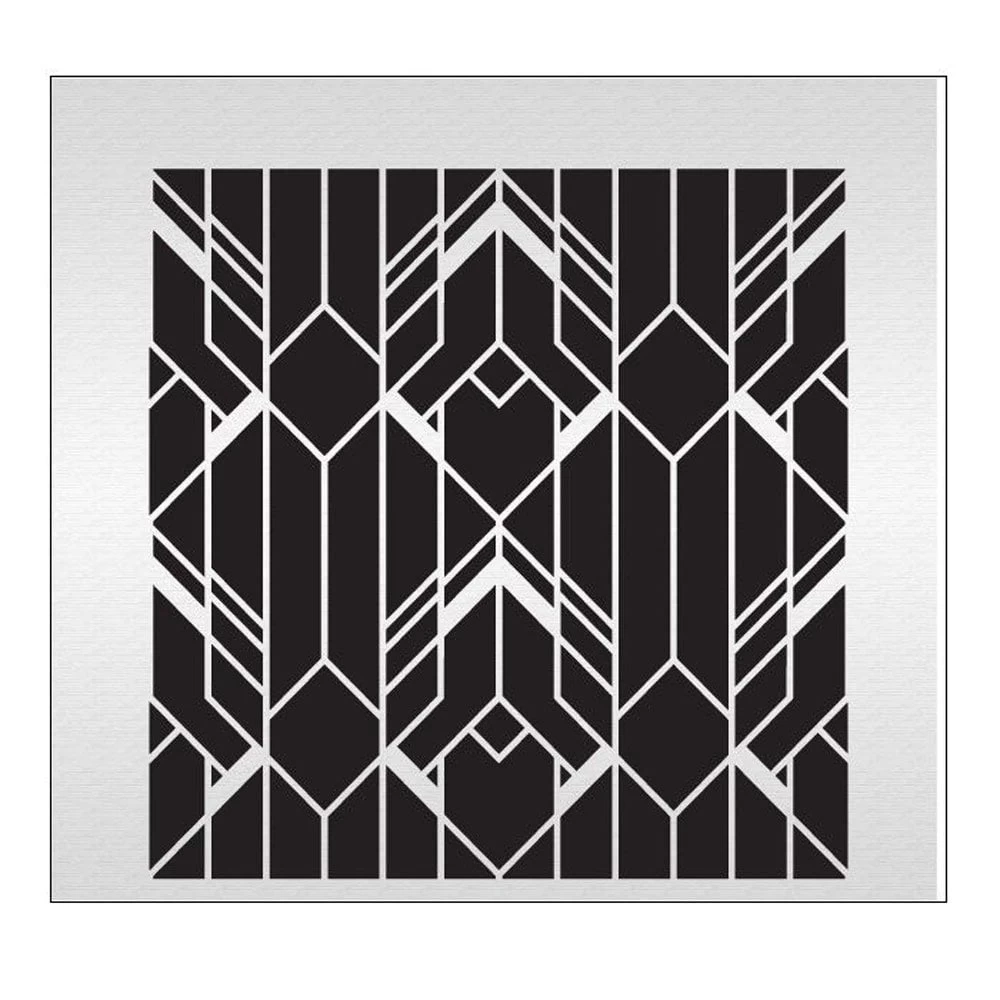 Delicate Art Deco Framework makes for an impressive crisp look worthy of any special event. Acrylic Stencil. Pattern Measures 7-5/8″ tall x 7-1/2″ wide.