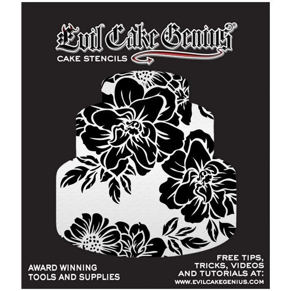 This gorgeous floral pattern works for everything from weddings to birthday cakes! A striking stencil to use on any top forward cake design! Can be masked off with tape for shorter tiers. Acrylic Stencil works with Royal Icing, Buttercream, and Airbrush.