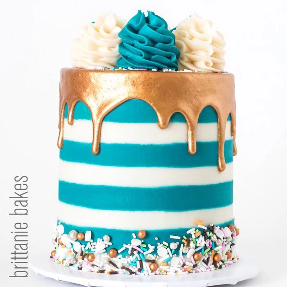 No need to paint or airbrush for beautiful copper details on cakes! Shimmery Copper Icing for Stenciling, Mesh Stenciling, Metallic Drip, and Piping! Just add Water and use! Thin it down with a bit more water, and use it as metallic Cake Drip!! Our Copper Royal Icing dries hard, and is completely edible! Sheer Genius!