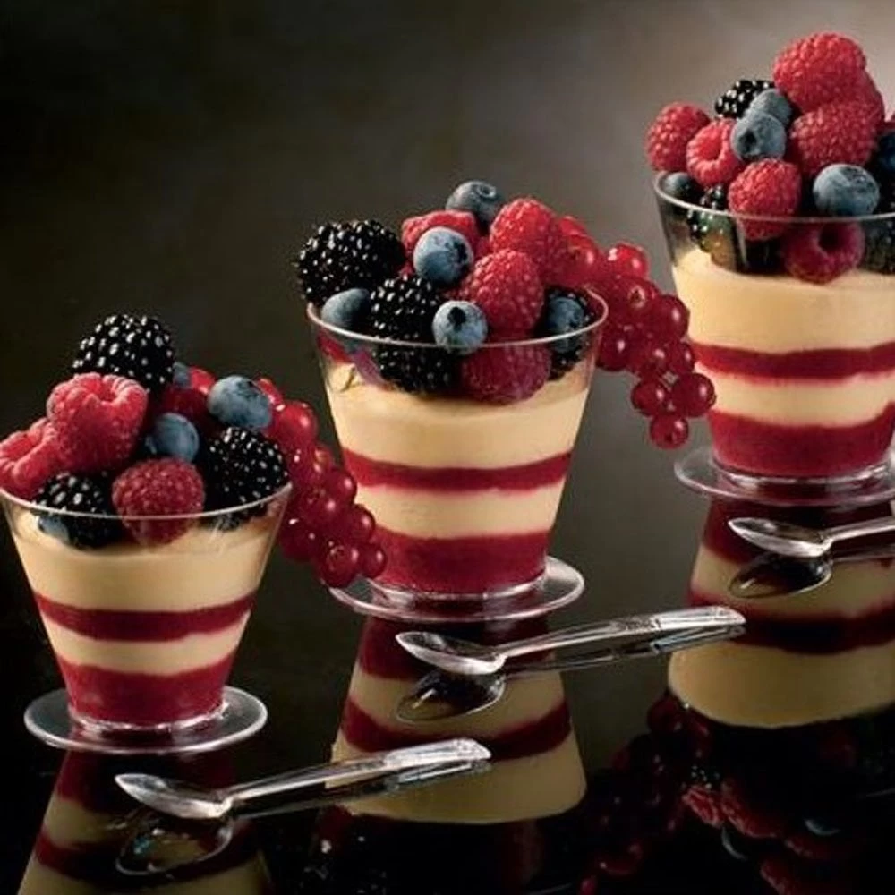 These high qualities, elegant plastic cups are a fantastic way to serve your desserts.