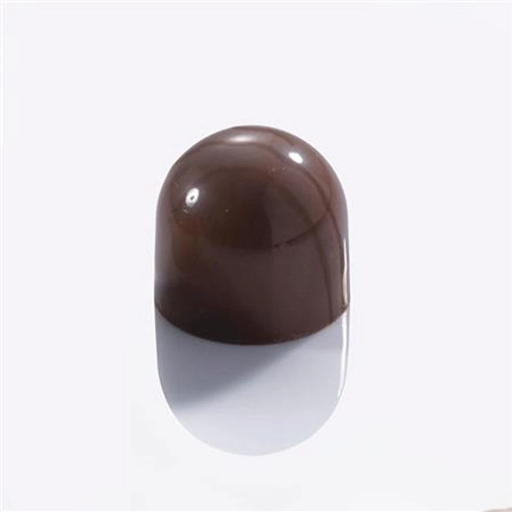 Polycarbonate mould for chocolate pralines with a spherical shape.