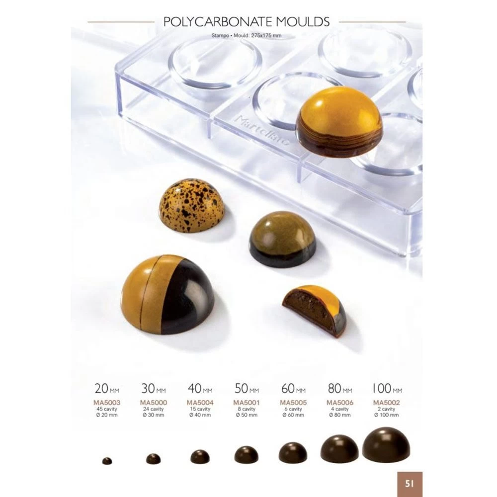 Chocolate, you can never get enough of that! With this semi-spherical bonbon mold from Martellato you can make beautiful semi-smooth, spherical chocolates. You can continue to vary endlessly with the making of bonbons, change the filling or decorate the chocolates with different sprinkles. By continuing to vary with different decorations and fillings, you really never get enough of chocolate and you have a different creation on the table for every occasion.