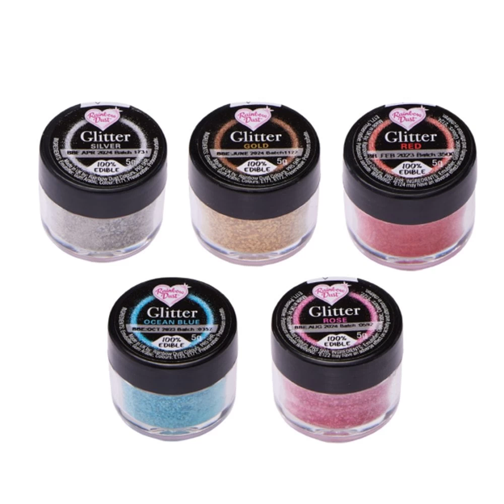 Glitter Multipack 5 x 5g Pots – Silver, Red, Rose, Ocean Blue, Gold