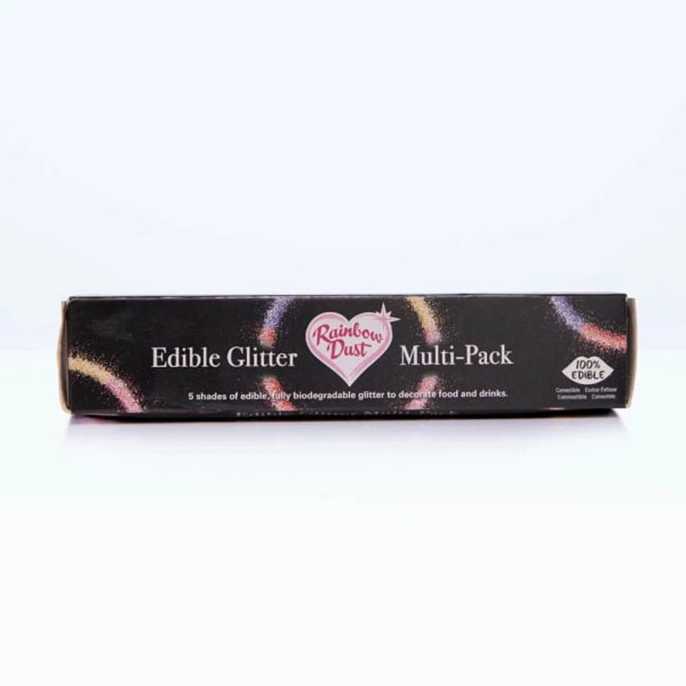 Our Rainbow Dust range of edible glitters are ideal for adding a touch of sparkle to your edible creations. They are ideal for sprinkling into soft icings, creating a funfetti effect. Apply them to fondant icing and marzipan for a textured, vibrant finish.
