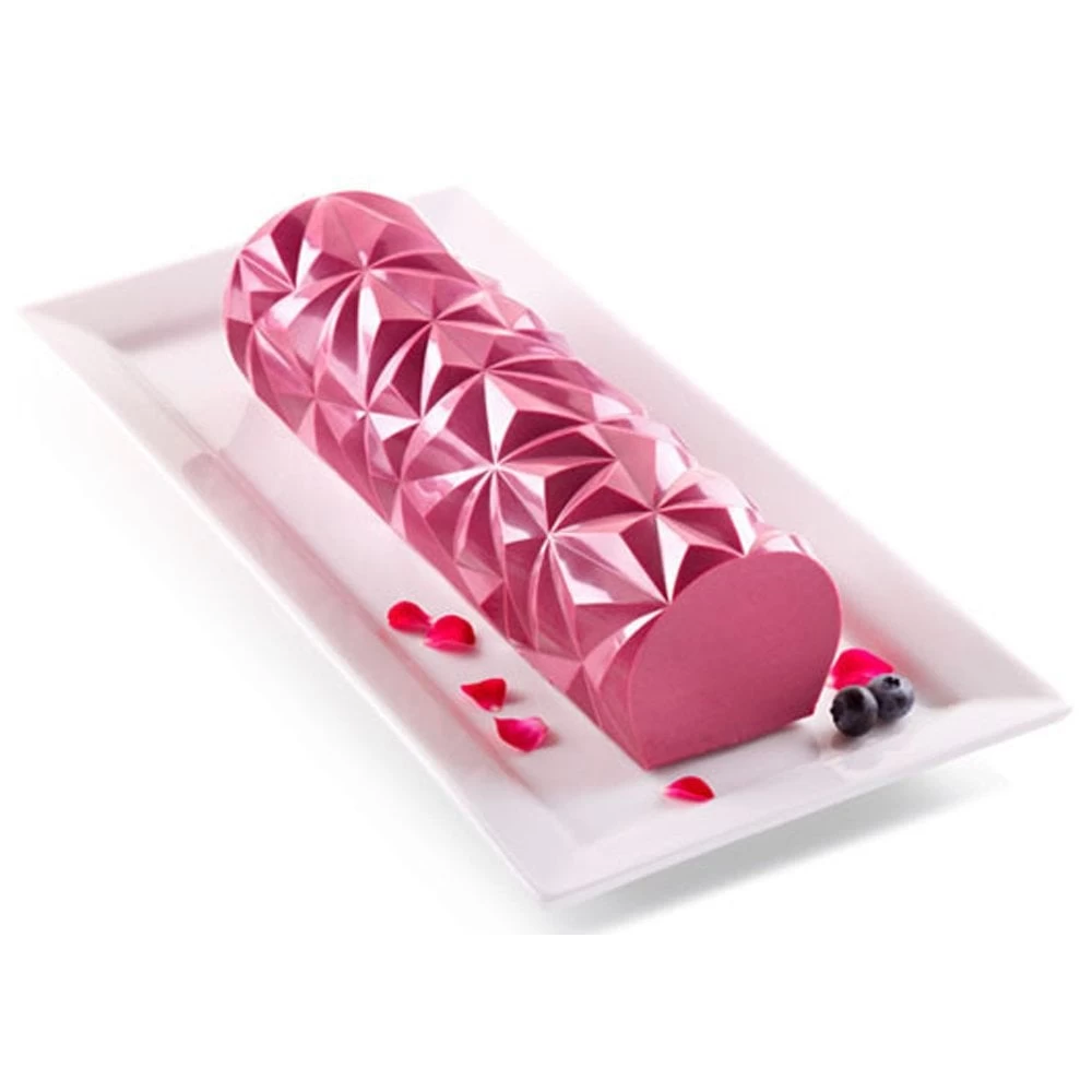 The log is the classic form for parties and making it has never been easier. Thanks to DIAMOND BÛCHE by Silikomart you can get a flawless result in a few simple steps. The mould is made up of a plastic support inside which you can insert one of the two glittering gold silicone mats and voilà, les jeux sont faites! Just one support, several preparations: you can create a perfect log with different textures just changing the mat. In the kit you will find a smooth mat and a wonderful faceted textured mat that will cover your semifreddo of precious diamonds. A real jewel on your table.