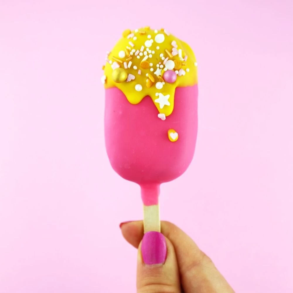 * large chocolate balls filled with delicate chocolate (colourful, yellow, pink, light blue)