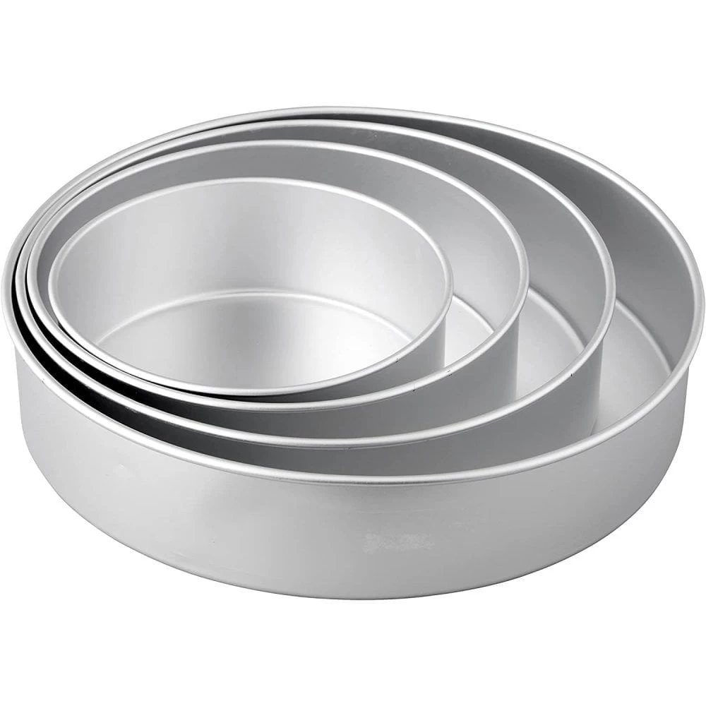 Set includes 8, 10, 12, 14 in. pans. Quality aluminum holds its shape for years. Each pan is 3 in. deep.