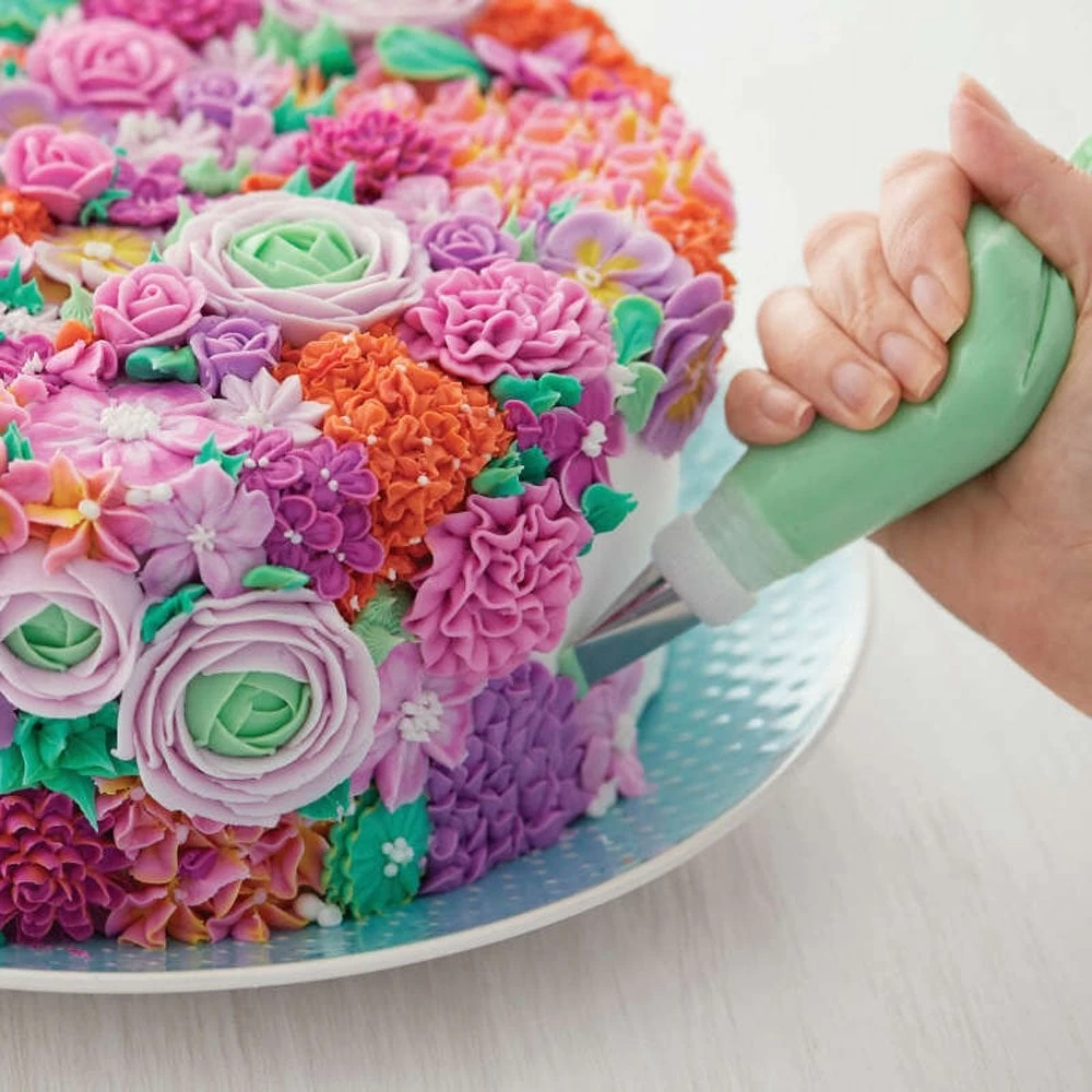 Whether you’re an expert decorator or just starting to learn, this tip set should be a staple in your kitchen. With 22 decorating tips, a coupler and a flower nail, you’ve got all you need to start making beautiful cakes and desserts. Set includes: 22 decorating tips (Round 1, 3, 5, 8, 12; Star 14, 16, 18, 21, 32; Leaf 67, 74, 352, 366; Petal 59s, 101, 104; Drop Flower 2D, 224; Specialty 47, 81, 233), plus a standard coupler and flower nail (1.25 in.).